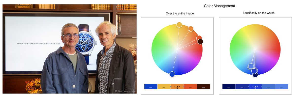 This demands extreme care with the photography to avoid relying heavily on post-production tools such as Photoshop. The naturalness and authenticity of the images must highlight the watchmaker's unique approach and the creative synergies proposed by Olivier Vaucher, centered on cutting-edge craftsmanship applied to watchmaking.