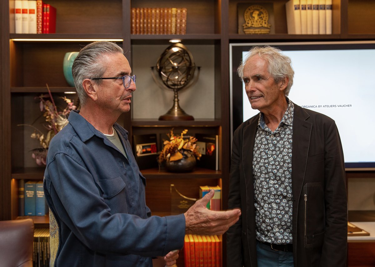 In this picture, published by the international press, the initiators of the Zurich branch of the GWD, from left to right: Antoine Pin, Chairman of the GWD and CEO of the Bulgari Watch Division (2024), Georges Kern, CEO of Breitling and Edouard Meylan, CEO of H.Moser & Cie.