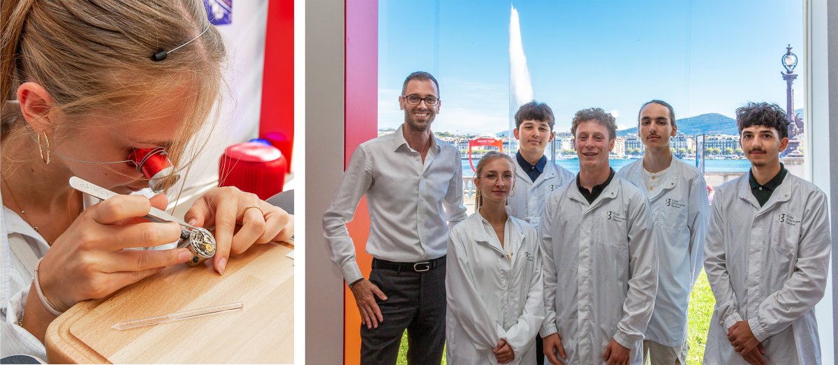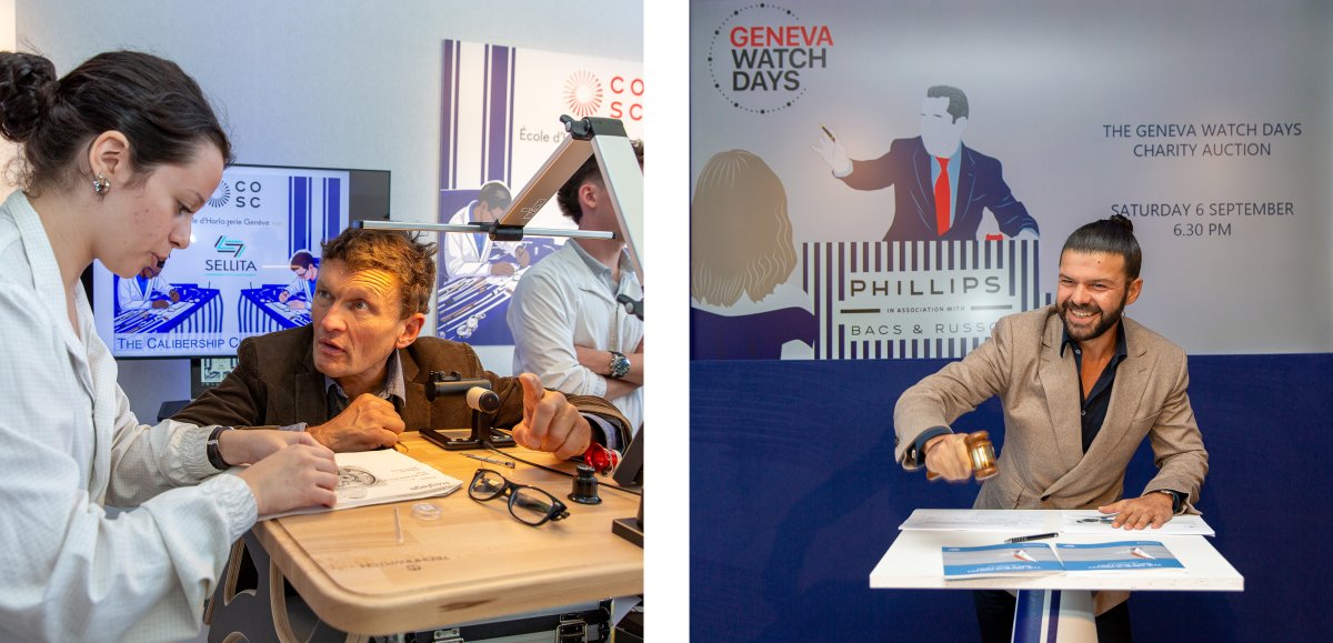 Job: Press coverage of the cheque presentation, representing the amount raised for the Geneva Watchmaking School, at the Geneva Watch Days auction. Followed by coverage of the visit to the school and the interaction of Jean-Christophe Babin, President of Geneva Watch Days and CEO of the Bulgari Group, and guests with the students.