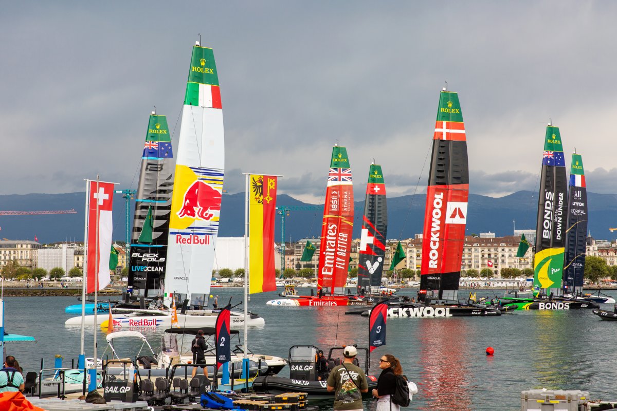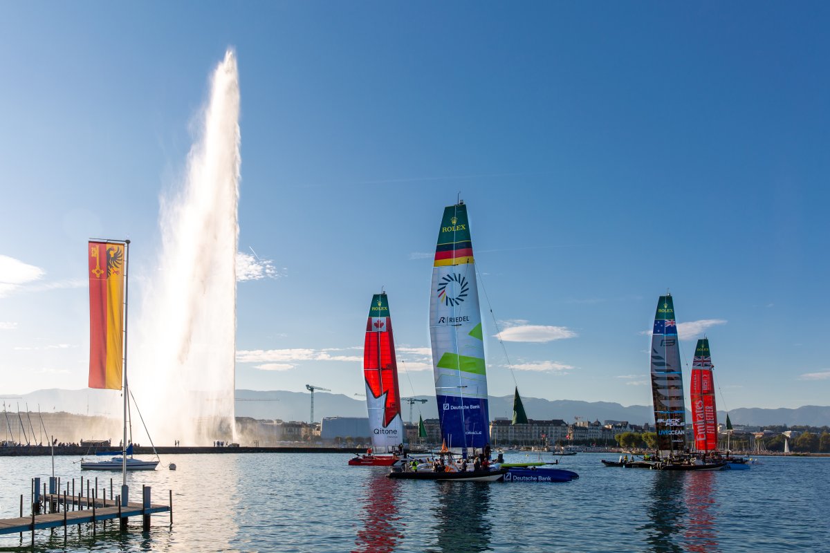 Job: Production of press images of the Swiss leg of the Rolex Sail Grand Prix taking place in Geneva, showing this competition from different angles. Particular care was taken to integrate the location into the images by showing the flags, the water jet and iconic monuments such as the cathedral.